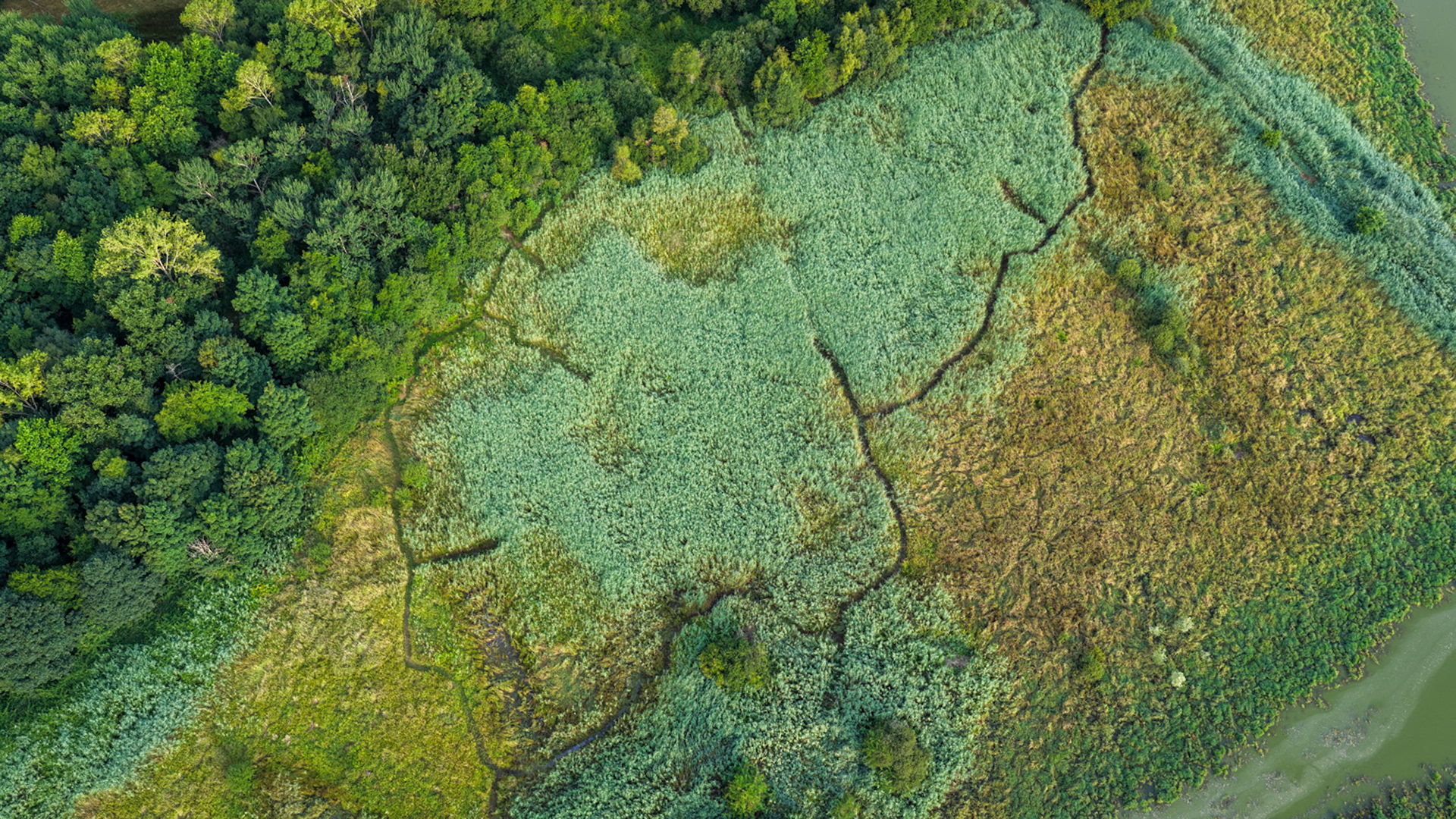 Vues du ciel, les textures foisonnantes de la végétation se mêlent aux doux reflets des cours d'eau, dessinant des toiles naturelles d'une infinie délicatesse. Un instant de contemplation absolue, pour célébrer la poésie d'une nature intacte.